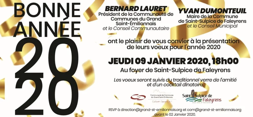 Habitant.e.s de Saint Sulpice de Faleyrens, Yvan Dumonteuil, Maire et son Conseil Municipal vous souhaitent une bonne et heureuse année 2020.