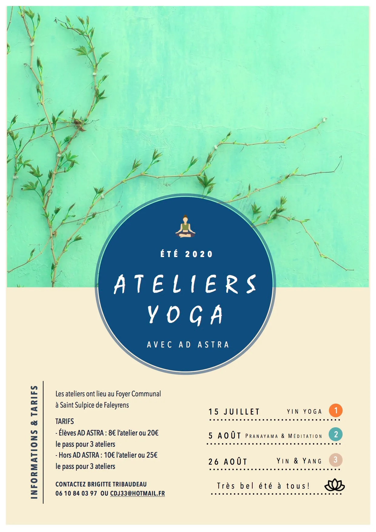 Ad Astra vous propose cet été de participer aux Ateliers Yoga.