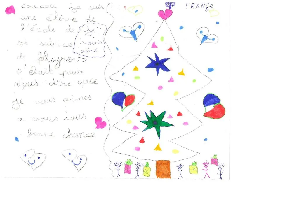 A l’occasion des ateliers en TAP (Temps d’activités périscolaires) gérés par le personnel municipal, les élèves de notre Ecole du Menhir, le regroupement pédagogique Saint-Sulpice / Vignonet, ont réalisé des dessins, envoyés pour Noël aux militaires en opérations. Un geste de solidarité pour montrer aux soldats, loin de chez eux à cette époque de fêtes, qu’ils ne sont pas oubliés.
