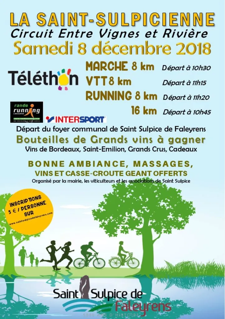 Renseignements au 06.10.84.03.97. Un évènement organisé par la mairie et les nombreuses associations de Saint Sulpice de Faleyrens avec le soutien de RANDO RUNNING et d’INTERPORT de Libourne.