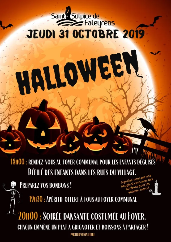 Rendez-vous au Foyer Communal à 18h et retour au foyer vers 19h30. Venez avec votre déguisement effrayant