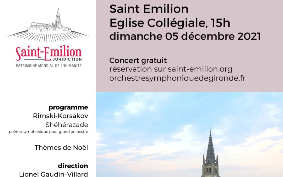 A l’occasion du 22e anniversaire de l’inscription de la Juridiction de Saint-Emilion sur la liste du Patrimoine Mondial de l’Humanité au titre des Paysages Culturels un grand concert symphonique est organisé à la Collégiale de Saint-Emilion le 5 décembre prochain.