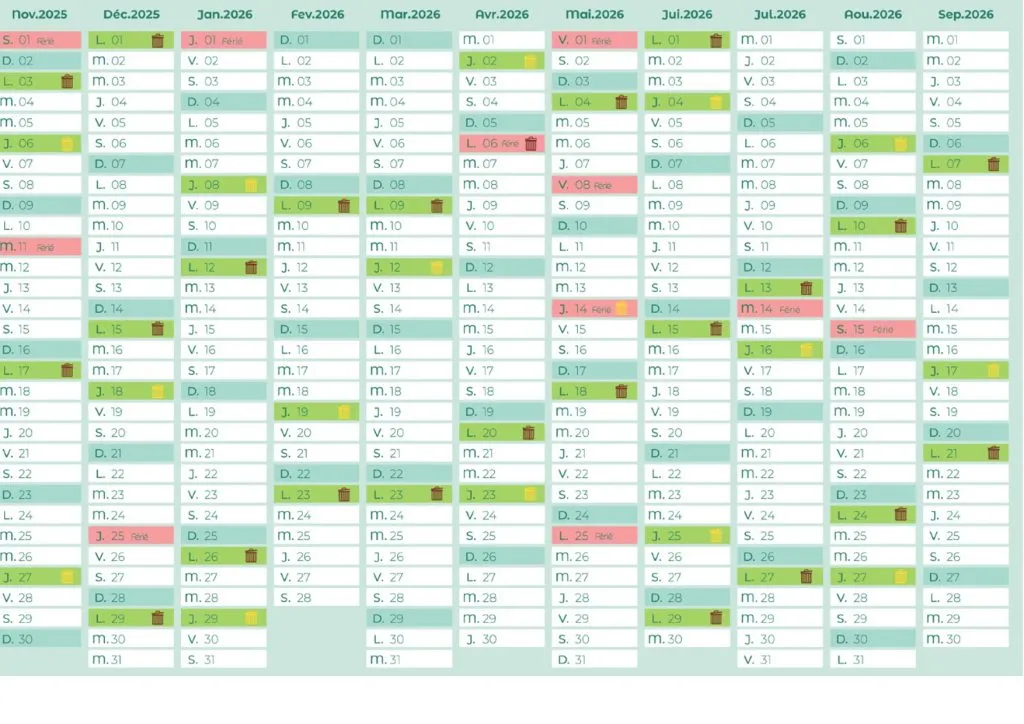 Télécharger le calendrier de ramassage des ordures ménagères : calendrier