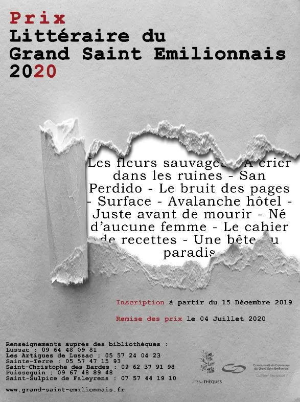 La 4ème édition du Prix littéraire du Grand Saint-Emilionnais avec ses trois catégories : Romans, Terroir et Polar. 25 personnes se sont déjà inscrites mais il est toujours possible de les rejoindre.